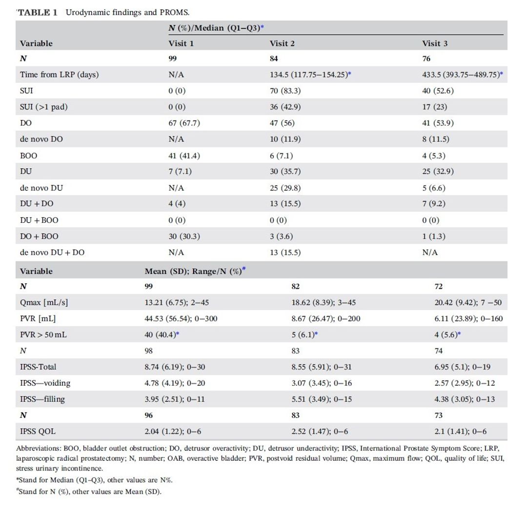 Co-incidence of de novo DU and postoperative SUI requiring more than 1 pad per day may be explained by both autonomic and somatic denervation during bladder neck and prostate dissection.