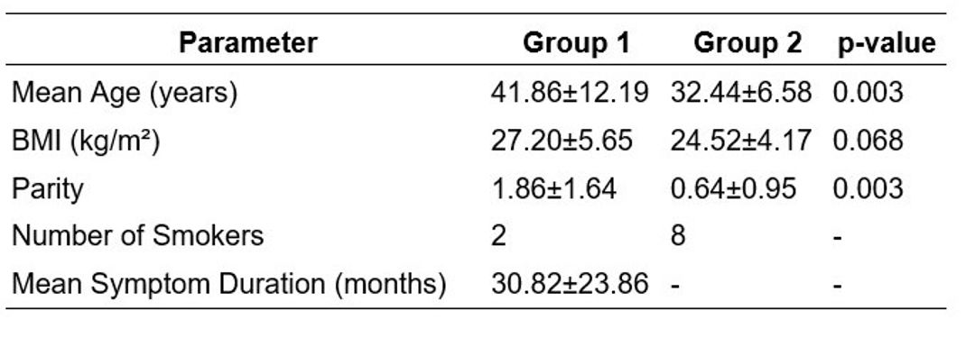 Figure 1 Demographic and Clinical Characteristics of Group 1 and Group 2