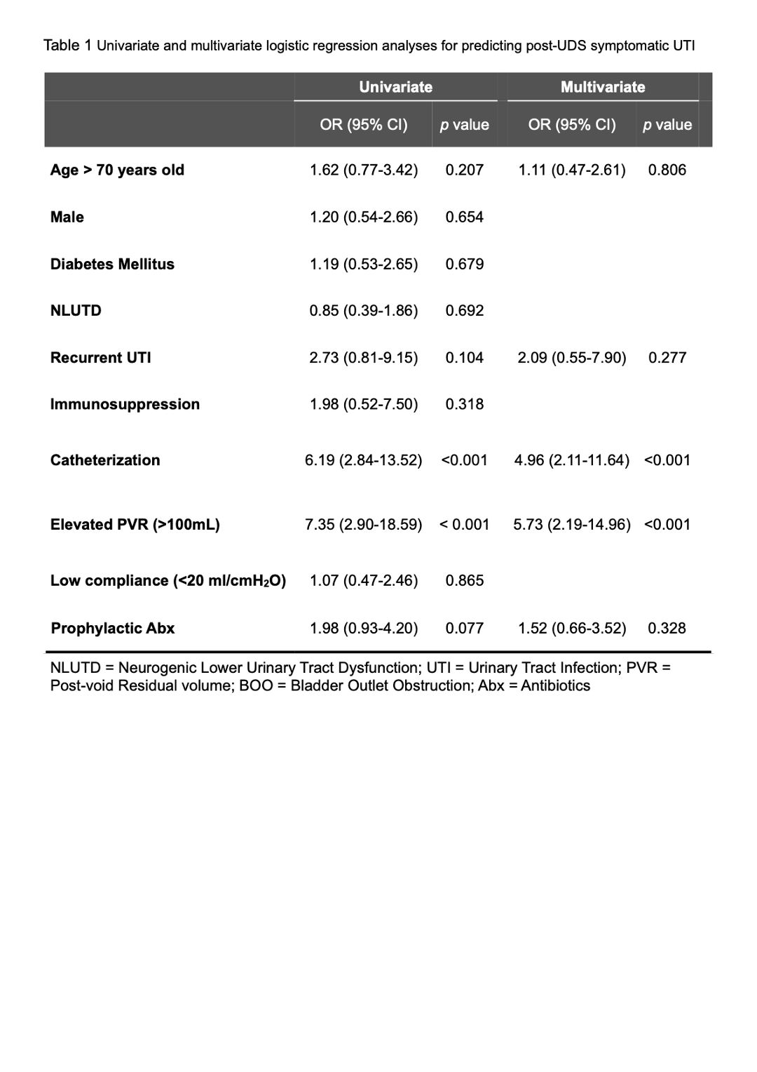 | Infection, Urinary Tract Urodynamics Techniques Retrospective Study Prevention |