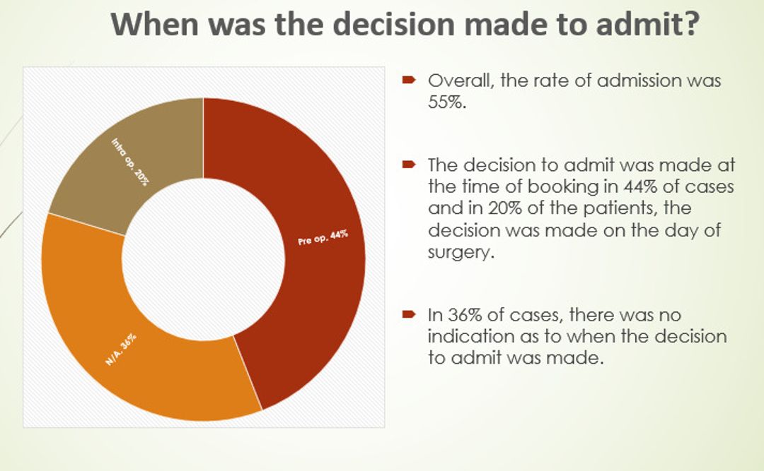 The results demonstrate that day-case Transurethral Resection of Bladder Tumours (TURBT) is feasible and safe, with 47% of patients successfully discharged on the same day. The low complication rate (6 out of 59 patients) and high rates of maintained continence (92%) suggest that day-case TURBT does not compromise patient outcomes. However, the high admission rate (55%) and inconsistent documentation of tumour size (missing in 42% of cases) highlight areas for improvement. Preoperative decision-making (44% of admissions) and clear documentation of tumour characteristics could further optimize day-case rates. The findings support adopting day-case TURBT as the default approach, provided patient and tumour factors are carefully considered, ensuring safety and quality of care.