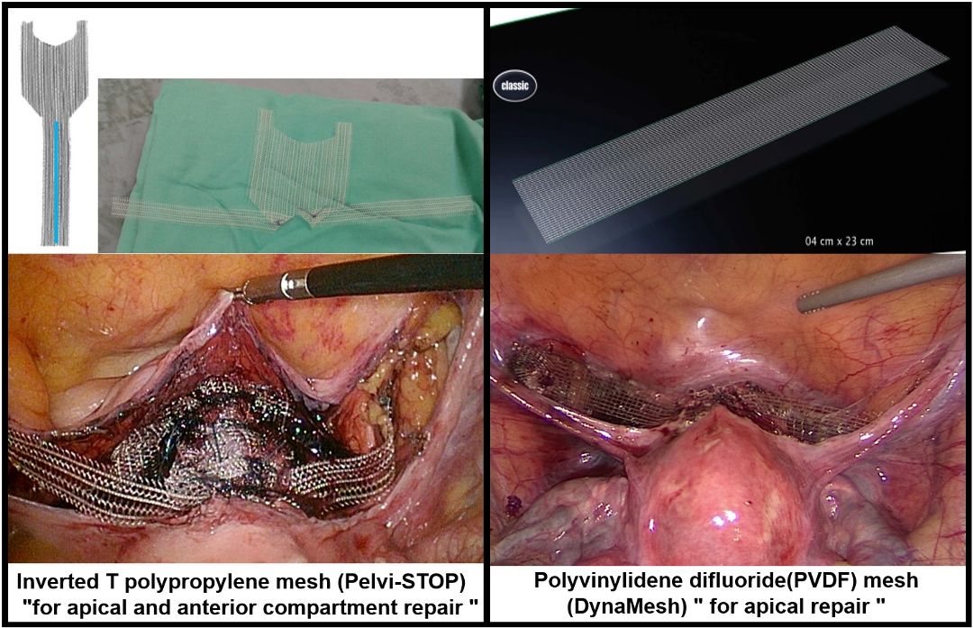 This is the first comparison of the surgical effectiveness of different meshes in laparoscopic pectopexy. We found that the inverted T polypropylene mesh group demonstrated comparable surgical effectiveness to the PVDF mesh group, with both achieving approximately 80% success. The PVDF mesh group had a shorter surgical time, as the anterior and posterior repairs were converted to vaginal procedures, which are less time-consuming. Apical recurrence was the primary concern, as pectopexy provides only lateral suspension. This may result in inadequate apical support when the uterus is preserved, leading to some cases of failure.